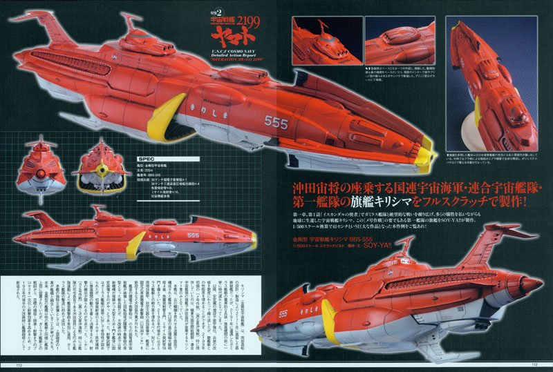 Dengeki saw this bet and raised it with 17 pages. They lavished unprecedented attention on the mecha seen in the Battle of Pluto from Episode 1. Gorgeous scratch-built models and support materials opened the vault on the flagship Kirishima and its Gamilas enemies. A glorious 2-sided Yamato 2199 poster was also included. See all the pages from Dengeki here.