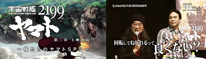 Yamato 2199: Before the Chapter 2 Premiere ~ Our Yamato Special made its debut on the Tokyo MX cable network. This was a followup to a special that preceded the first film and would soon be seen again as a bonus feature on home video. The new special was another half-hour interview with Yutaka Izubuchi and various cast members all about Chapter 2.