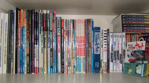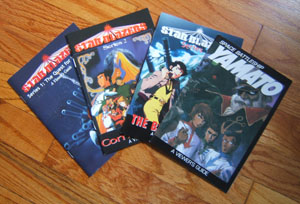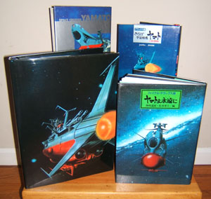 Part of the indispensible reference libararyThe first order of business was to decide what could be done with the DVD format, which I had only begun to explore when I got my first player only a few months earlier. All the best DVDs came with tons of extra features, and we all agreed that Star Blazers deserved as much attention as we could give it. That’s tricky when you consider that most of the production material is long gone, having been discarded after the series was assembled in 1980. Fortunately, Space Battleship Yamato received an incredible amount of coverage and documentation when it was made in Japan, so the obvious answer was to turn to my personal collection of Yamato books and memorabilia, which I had been accumulating for about as long as Star Blazers existed. Amazingly, even more collectibles seemed to pop up just when I needed them for one purpose or another. Never underestimate the value of persistent scrounging.