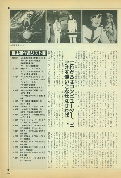Yamamoto: I have a feeling that people working in animation from now on will have to know computers and video. Of course, it’s TV also. When you say TV, I think “the future of anime” is impossible without a knowledge of electronics.