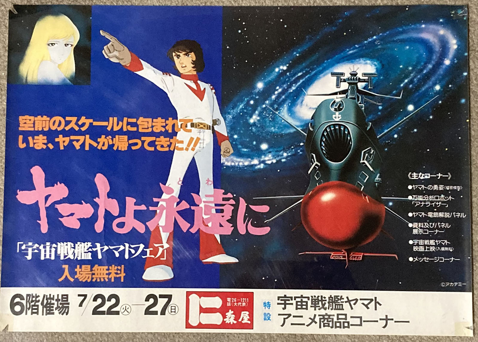 Be Forever‘s first retail tie-in launched at Moriya Department Store, a Space Battleship Yamato fair with several attractions (including the 1/1 Analyzer model) and merchandise for sale. It was a continuation of similar events held in 1978 for Farewell and would carry on into the 21st century when the revival/remake era began.