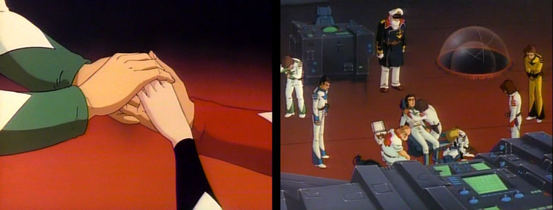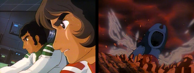 Shima’s death is very maudlin, intended to invoke the maximum amount of drama. It’s not enough for him to die, he has to reveal a love triangle at the last minute. In Shima’s history, there was never any mention of a rivalry for Yuki’s love; there was no foundation, no build-up. If we follow the thread of his character throughout the saga, the great love of Shima’s life was Teresa. Their love was so great she brought him back to life and sacrificed herself for him. However, aside from a brief clip of her from the beginning of The New Voyage, there has never been a reference to Teresa again, even here in his dying thoughts. The combination of ignoring Teresa and confessing his love for Yuki mars what could have been a great scene. I find it a needless complication, a horrible, mawkish contrivance.