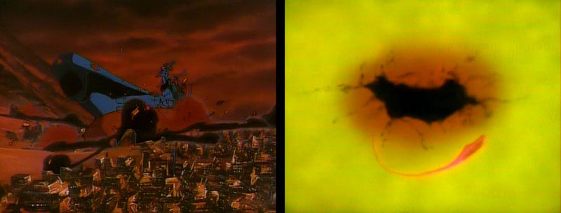 De Zahl’s fleet follows Yamato out into space. When a volley of hyper-radiation missiles is launched, Sanada activates his defense system, which successfully destroys all the missiles