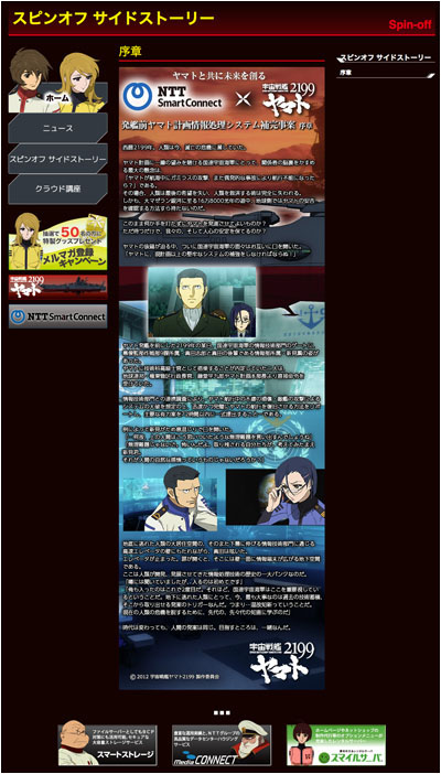 In November 2014, a collaboration was announced with Japanese telecommunications company NTT. The dual theme of this tie-in is high technology and environmental protection, and the plan is to use the characters and images to promote the company’s services. An interesting result of that collaboration made its debut on the NTT X Yamato website on Feb 16: the introduction to a Spinoff Side Story that has since become a monthly ongoing feature.