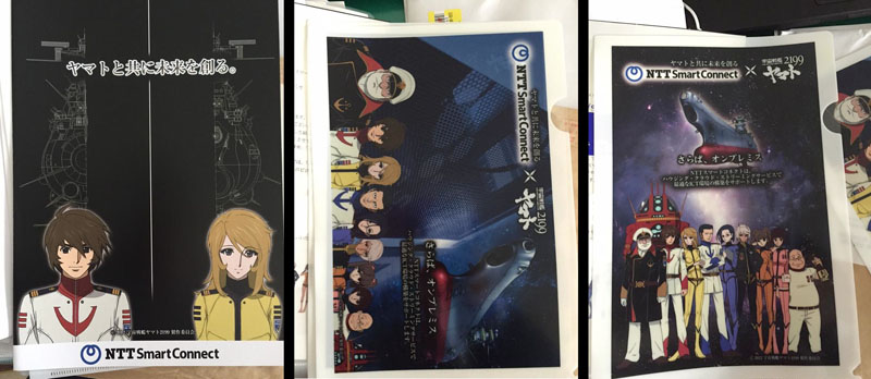 NTT’s 2199 tie-in appears to go beyond the digital world as well. Twitter user “Hat Mata” posted these images on February 17 showing a set of NTT X Yamato 2199 clear files.