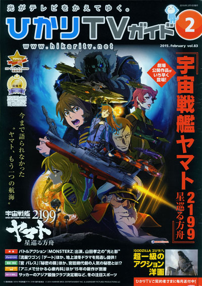 Hikari TV was one of the four streaming services that would offer Ark of the Stars on March 21, adding it to the rest of the Yamato 2199 lineup – all seven theatrical chapters and A Voyage to Remember. Volume 83 of the monthly Hikari TV Guide commemorated this with a cover and the double-page spread shown below.