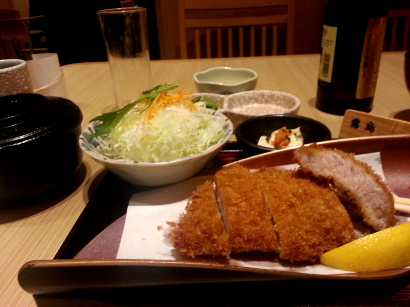 Between the inclement-looking weather and a general feeling of lethargy, I took my sweet time the next morning. After getting caught up with Facebook, I realized the best idea was to get an early seat at Katsukura, the tonkatsu (fried crumbed pork fillet) restaurant in The Cube that I missed on an earlier night. I got there close to opening time at 11:00, by which time there was already a queue of customers. But it was only a few minutes before the restaurant opened and we were seated. I ordered the most expensive item on the menu, pork loin tonkatsu, and waited for it to be served. This was the first tonkatsu I’d had in Japan, and it was very nicely done, moist but not dripping with oil.