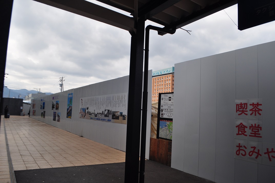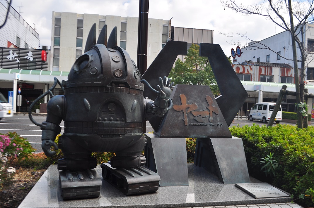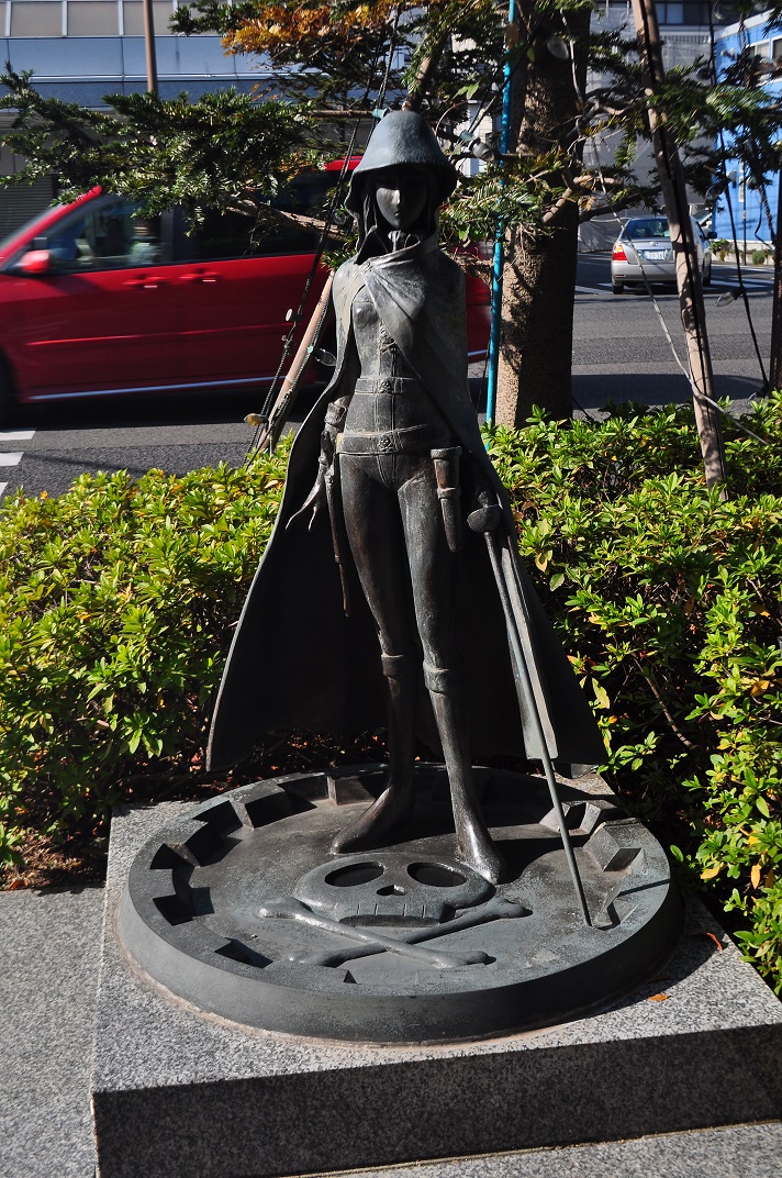 When I reached Tsuruga Station, I exited to find that Tetsuro and Maetel were not out on the station concourse to welcome me. In fact, there was no station concourse. Completely fenced off for reconstruction work, their bronze statues were nowhere to be seen. After a quick consultation with Tim on Facebook, I found that the start of the walk was only the other side of the street running alongside the station. While I could recognize many a Yamato character on the other side of the street, my side focused on Galaxy Express and Captain Harlock.