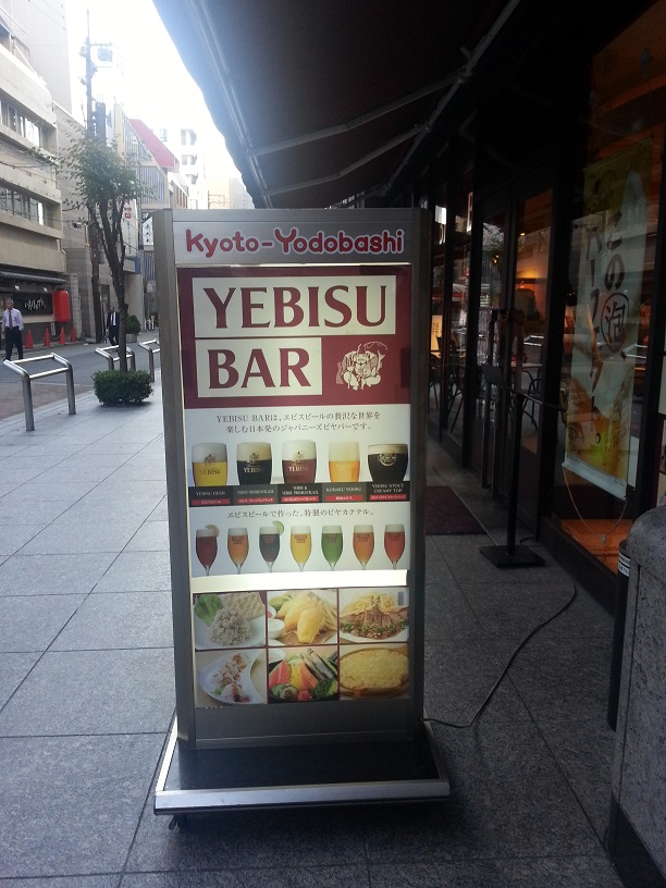 After getting back to Kyoto, I looked around for a light meal but wasn’t in the mood for anything specific… and for the second time on this trip I wound up at McDonald’s near Kyoto Tower. Of course, right after finishing my meal there, I step outside and what do I find? A Yebisu Bar, which generally does quite good food, and also serves my favorite beer in the world.