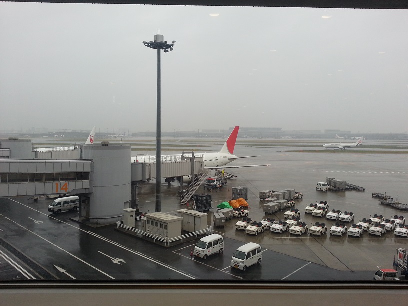 In order to travel the shortest time to Haneda Airport, I had to leave the Shinkansen at Shinagawa Station and find the Keikyu line for the airport. The weather in Tokyo was no better than Kyoto that morning, but fortunately I wouldn’t be exposed to it. It took a bit of looking around, but soon enough I was on the right train. A short while later, I was back at Haneda Airport.