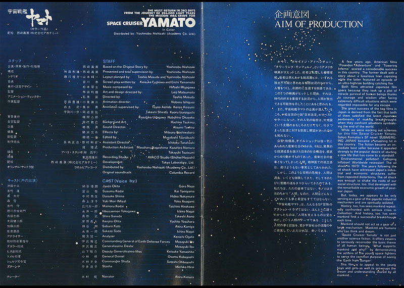 And the adventure encompasses the whole universe with the creativity only animation can possess. This breaks past cultural limitations and creates a film that can be accepted internationally. As a producer, I would like to create films for the entire world. I believe Space Battleship Yamato is the first step.