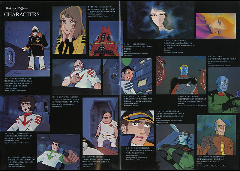 Leiji Matsumoto was appointed to design Yamato and the main characters of this film, as well as other mechanisms, concepts, and dreamlike women. With his aid, the film also presents original fight scenes and the realistic workings of mechanisms, thereby pursuing an expression of power and a sense of weight that were not possible in standard animated films.