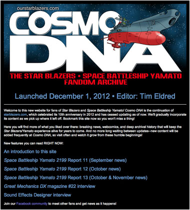 As a lifetime Yamato fan, ten years was not enough for me. There are still hidden realms to explore, and the call is irresistable. So although I could no longer work in an official capacity, nothing could stop me from forming my own fansite to continue the voyage, and that’s where Cosmo DNA came in. From December 2012 until August 2013, I continued working in a transitional format while an extensive effort got underway to retool everything into the new site you’re looking at right now. It’s all here in a big shiny package and hopefully will be for all time. At this point, it’s the internet’s most comprehensive English-language archive for Star Blazers and Space Battleship Yamato, and it will only continue to grow.