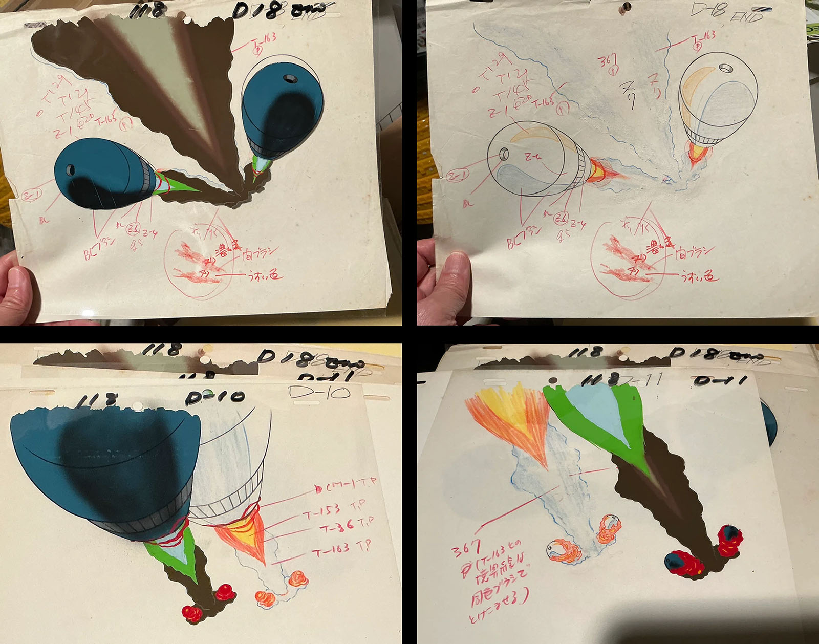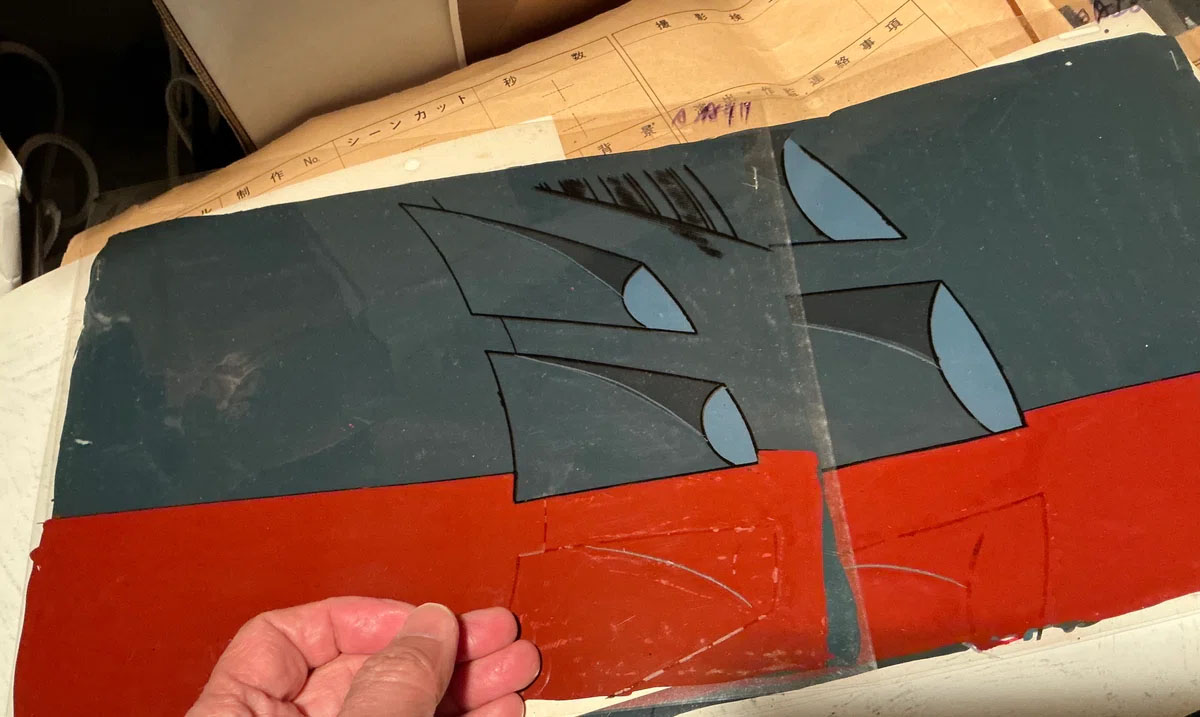 With Yamato, we were constantly pressed for time. as soon as the painting was finished, the cels had to be rushed straight to the filming stage. The problem was, the paint hadn’t dried yet. We’d try using hair dryers, but even if the surface of the paint dried, the inside would often remain soft and squishy. We even resorted to truly ridiculous measures, like taping the cels to the windows of the car transporting them from Sakuradai to the filming studio, hoping the wind from the drive would dry them! But, of course, they never really dried.