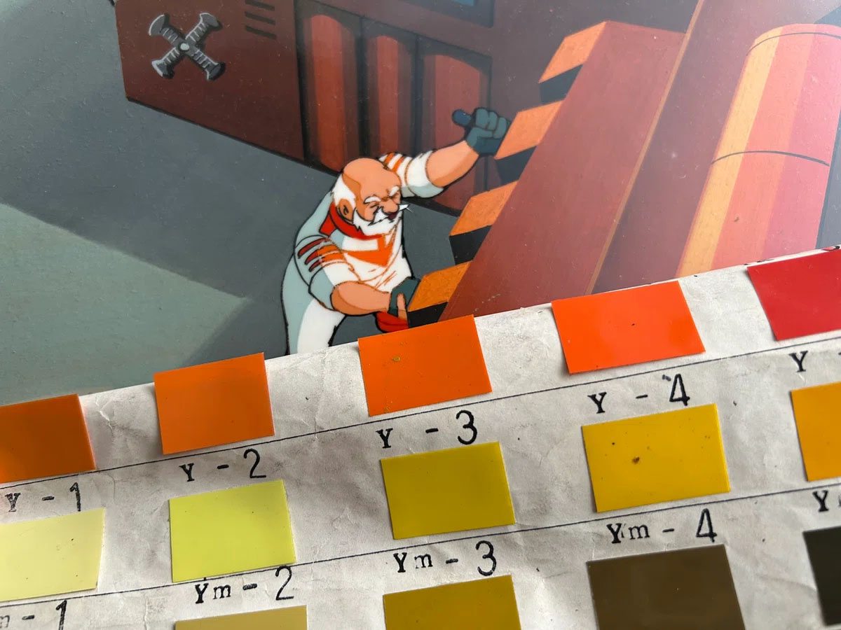 Hirose: All sorts of issues could arise when working with cel paint. Since the colors were created by mixing various pigments together, the exact shade could vary from one production batch (or “lot”) to another. Even if you thought you were applying the exact same color, if you happened to use paint from different batches within a single shot, the colors would visibly “jump” or shift when you watched the final footage. We even had instances where the paint would separate during the drying process, resulting in a blotchy, uneven finish.