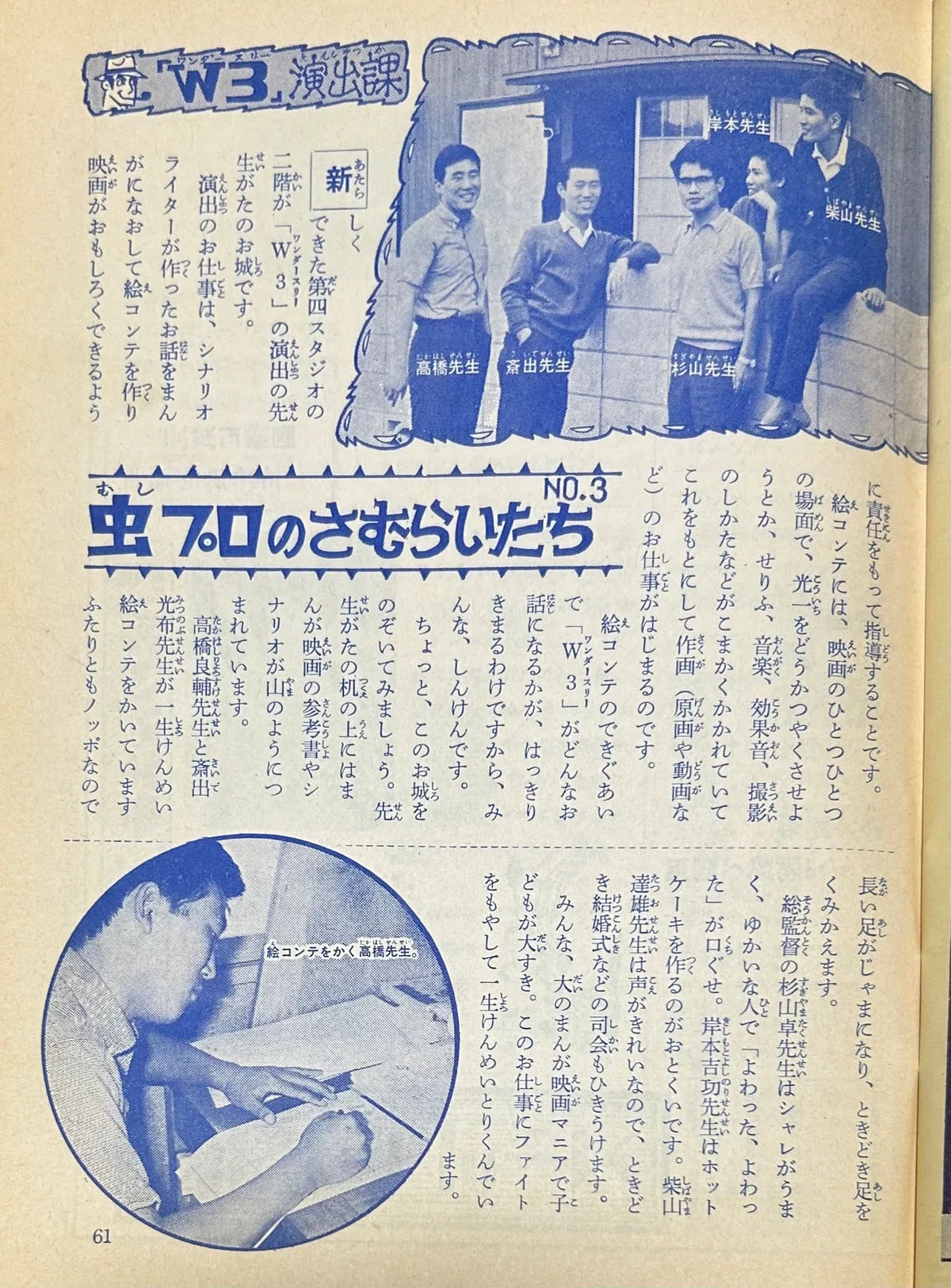 Tatsuo Shibayama during his time as a director. From Tetsuwan Atom Club, Issue No. 16 (November 1965), published by the Mushi Pro Fan Club. Excerpted from the feature “The Samurai of Mushi Pro.”