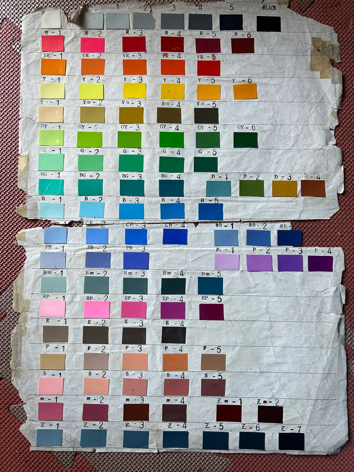 The actual color chart used for Space Battleship Yamato. It features 105 colors. Some people prefer using charts where the individual color swatches are larger strips of paper. The chart used for Zero Tester: Protect the Earth! consisted of only about 80 colors, and mostly muted, muddy tones at that. Since the paints selected for Yamato offered such vivid, brilliant color reproduction, I made sure to keep and preserve this specific chart rather than throwing it away. The cardboard backing is just a photocopy, though, so it’s in pretty rough shape now…