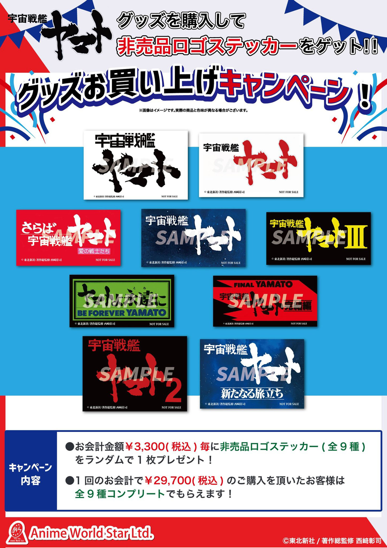Logo stickers; one given away with each 3300Y purchase, or complete set with 29,700Y purchase (about $200)