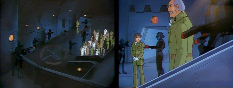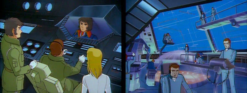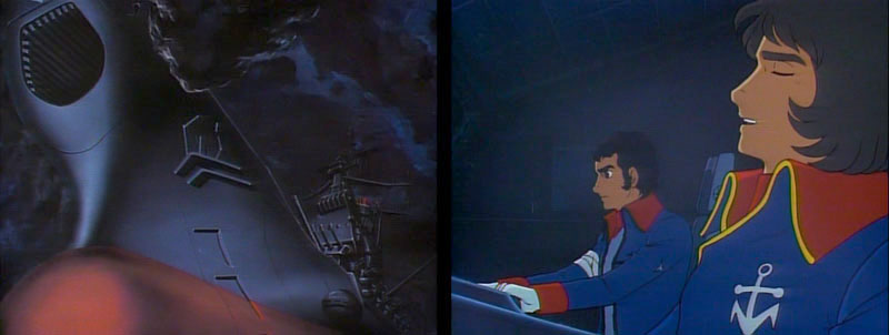 Story note: As seen in Leiji Matsumoto’s first story draft for the movie, the mechanized fleet began as a much more significant thematic point. The story was to be set many more years in the future after human crews had been largely taken out of circulation, thus creating a major vulnerability to alien attack.