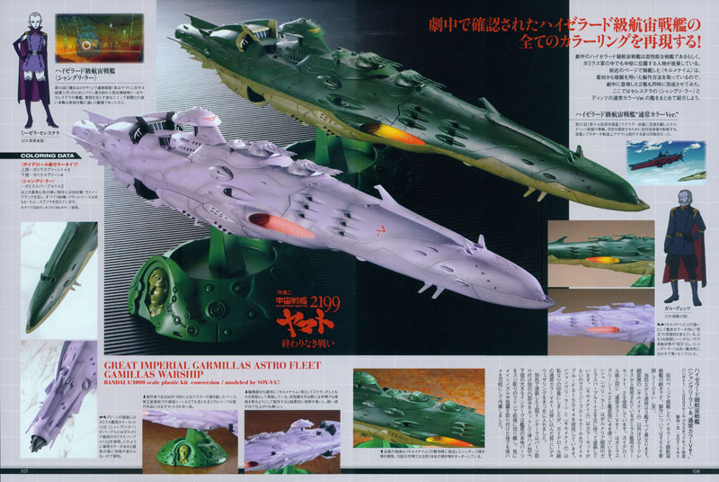 Under the territorial expansion policy of Abelt Dessler’s regime, the active military branch of the Garmillas Empire not only increased the production of existing vessels, but also the competition between provincial planets to develop special prototype vessels. Among these, one of the newly-created vessels called an Astro Battle Carrier combines the characteristics of an aircraft carrier and a battleship, giving it the ability to conduct independent operations.