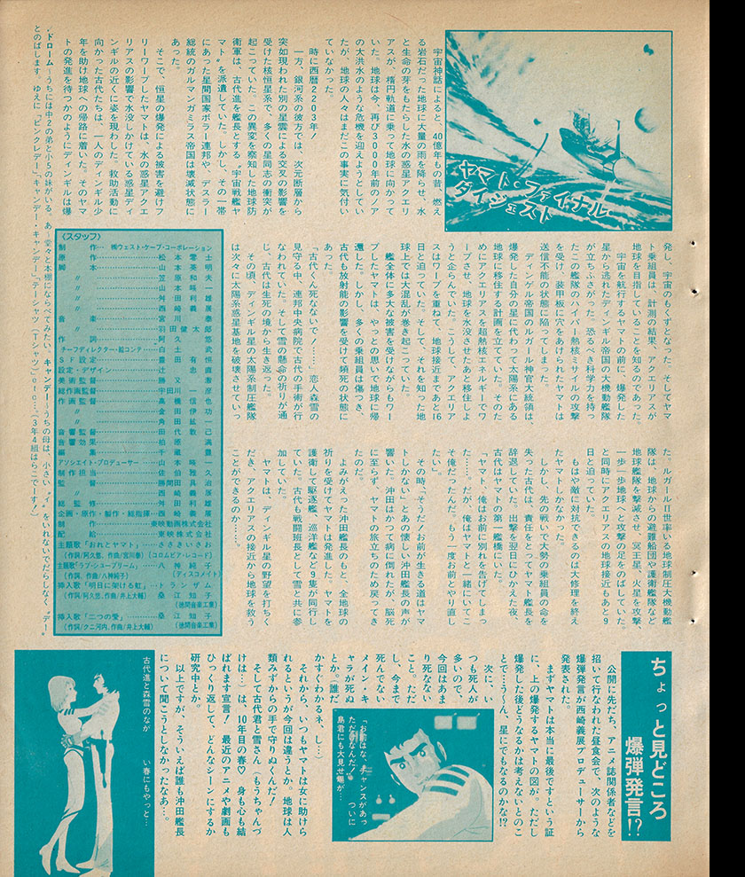 Right side: a full page dedicated to the three movies in the “spring movie war.” March 12 is still the premiere date for Crusher Joe and Harmagedon, but Final Yamato has bumped back a week to March 19. Fanroad was the first publication to announce it.