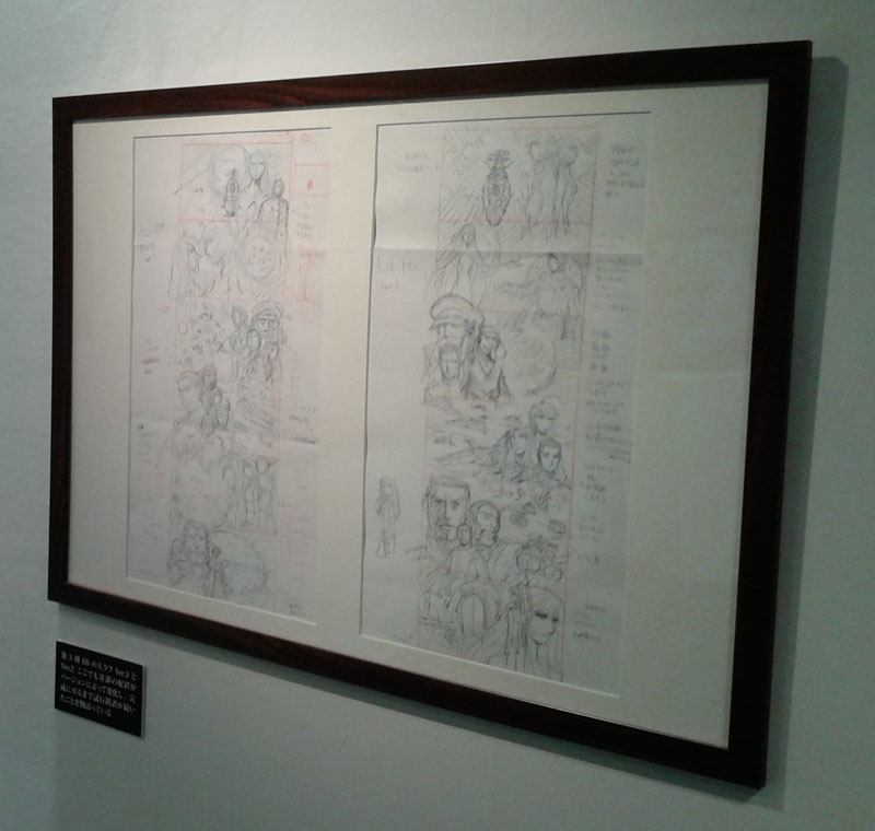 The designs that were distributed to the staff had text typed on a PC, and the color was adjusted to make them look like they were drawn on white paper, in a state where everything was all cleaned up. Those are the conditions in which they were published in the EARTH design book. The pictures shown in this venue hadn’t been scanned and cleaned up on a PC, and some had big creases right through the middle of the paper, which made it a unique exhibition in many ways.