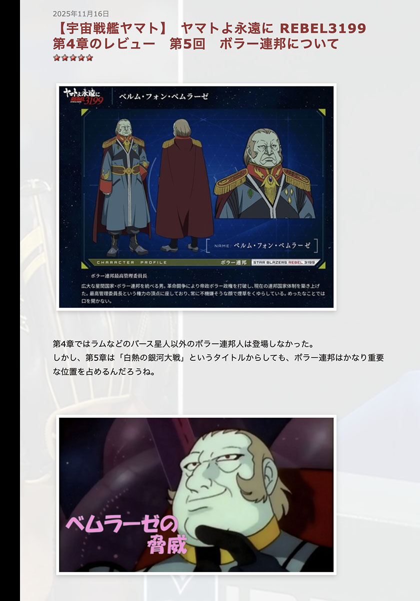 On top of that, my pen name is written as “星鈴” (Hoshirin) but read as “Stalin” – I’m that big of a Soviet Union fan. So the Bolar Federation in 3199 is absolutely irresistible to me. Originally, I started watching Yamato because I liked Dessler, so my absolute favorite is the Galman-Garmillas Empire. But my second favorite nation is the Bolar Federation.