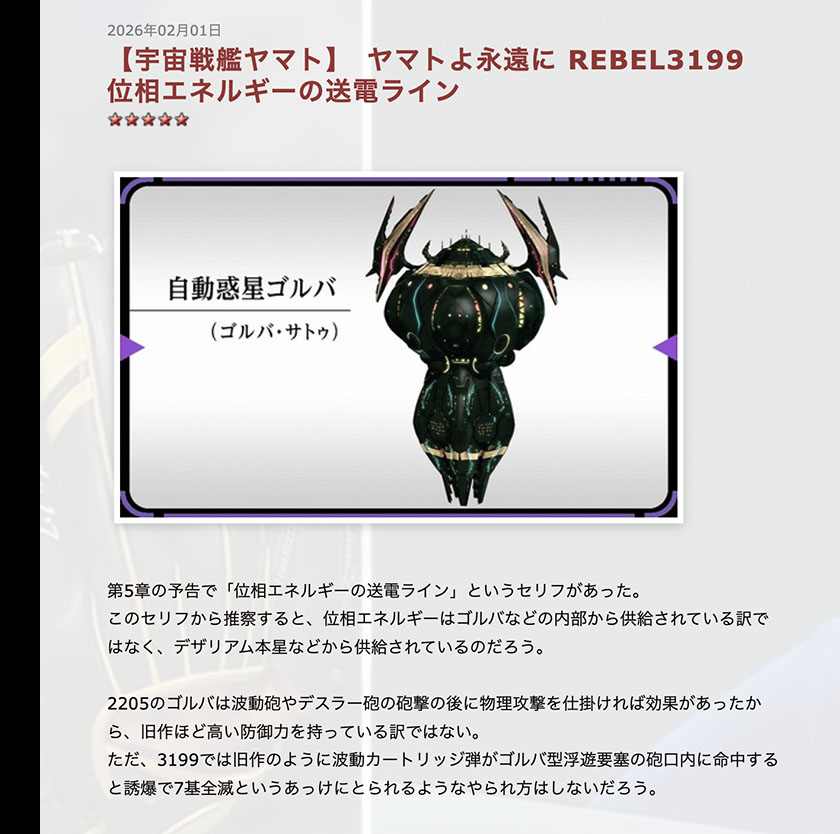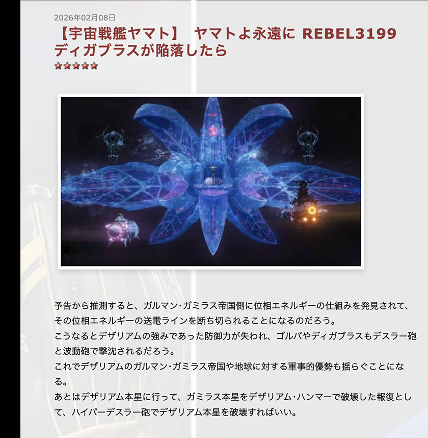 I’ve gone off on a tangent, but if the phase energy transmission lines are cut, Goruba will lose its phase energy defensive capabilities and can be defeated with the Wave-Motion Gun or Dessler Cannon. Dezarium’s defensive capabilities are heavily dependent on phase energy, so in one fell swoop, it would lose its advantage over Earth and the Garmillan Empire.