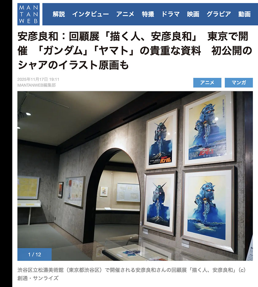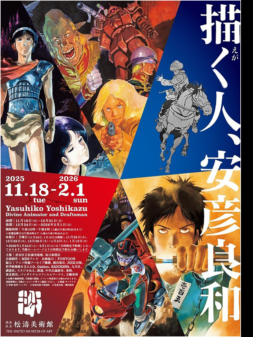 The retrospective exhibition The Artist, Yoshikazu Yasuhiko, featuring manga artist and renowned character designer for the anime Mobile Suit Gundam, opened at the Shibuya City Shoto Museum of Art (Shibuya Ward, Tokyo) on November 18. This exhibition, previously held in Kobe, Shimane, Aomori, and Hokkaido, now comes to Tokyo. It runs until February 1, 2026.