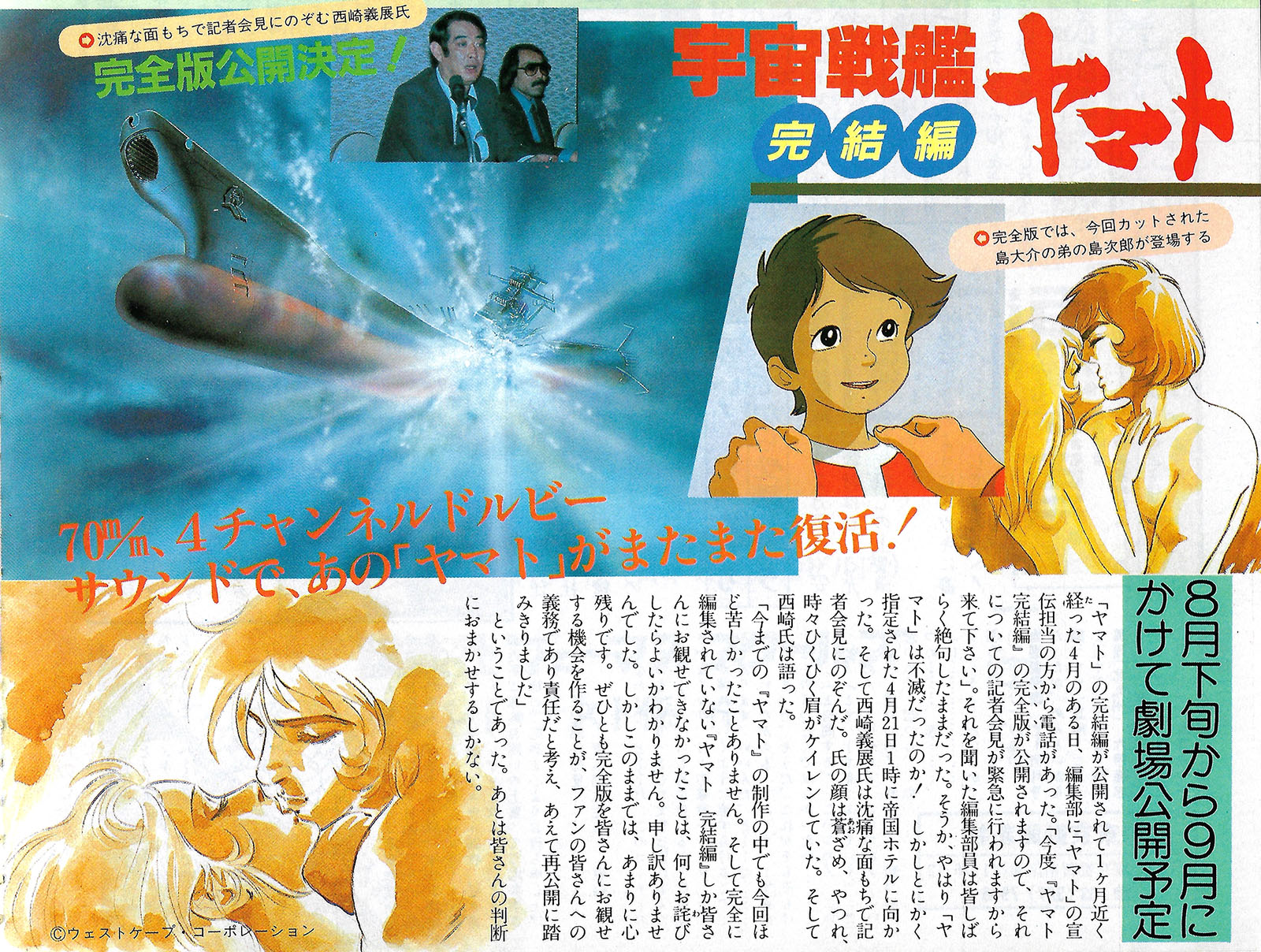“Even in the production of Yamato up until now, it has never been as difficult as it was this time. I don’t know how to apologize enough for the fact that we were only able to show you the unfinished final chapter of Yamato. I’m very sorry. However, it would be a shame to leave it as is. I believe it is our duty and responsibility to the fans to create an opportunity for you to see the Complete Version, so we have decided to re-release it.