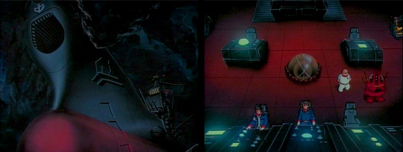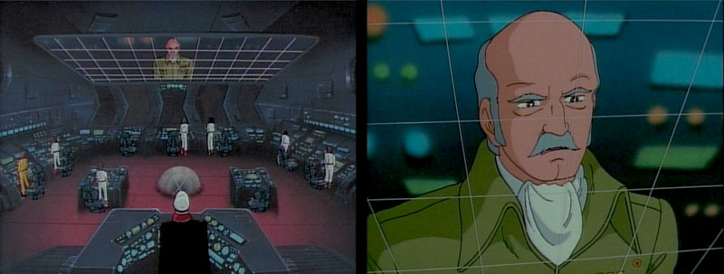 Control room of the black satellite fortress orbiting the mother planet: the target scope zeroes in on Yamato.