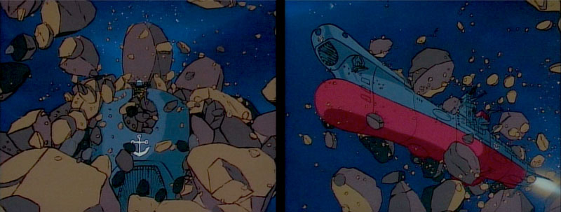 Yamato escapes from the dark cloud. (Here, the screen changes from Vistavision to Cinescope.) Relief quickly turns to surprise–the space outside looks exactly like the solar system.