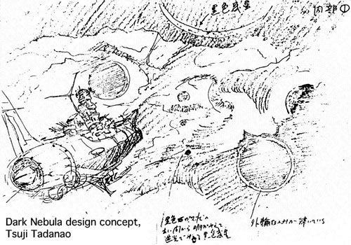 Yamato‘s First Bridge: The captain (or possibly Kodai) gives orders to end the survey and plunge through the Dark Nebula. When Yamato is surrounded by the cloud, it is affected by natural phenomenae. (The highlight of the scene.)