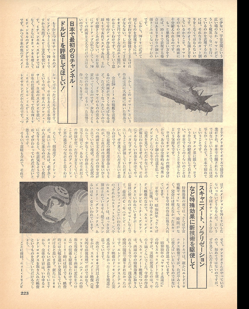 We did utilize Scanimate during the production of Be Forever Yamato in 1980, but in the end we were only able to incorporate about one-fiftieth of the footage we actually created. For this production, we once again intended to integrate Scanimate footage into the on-screen special effects for the spring release. Regrettably, however, we were unable to complete the filming as planned due to time constraints. I deeply regret that we could not deliver a finished product that fully realized the intended fusion of electronic imagery and traditional animation.