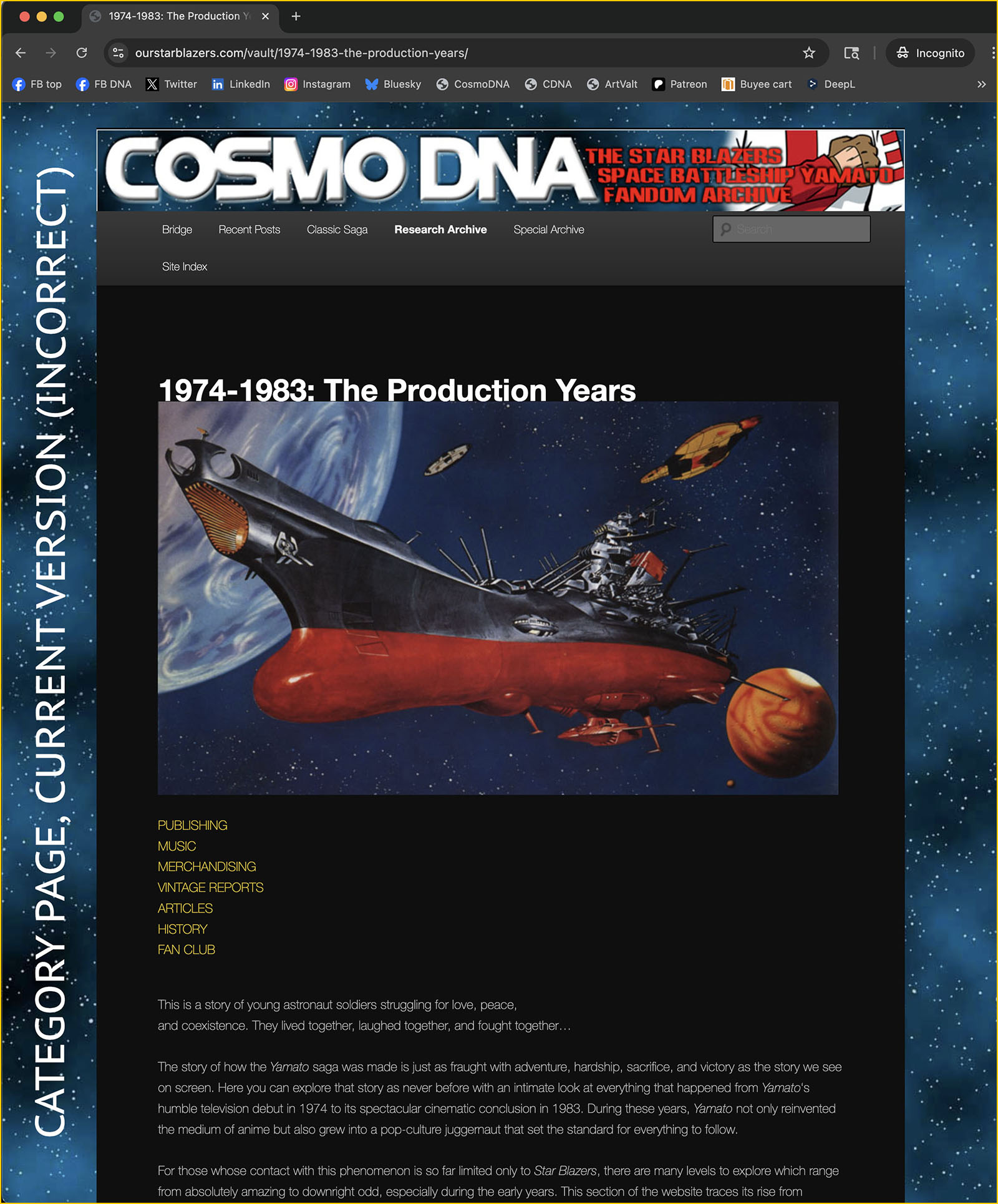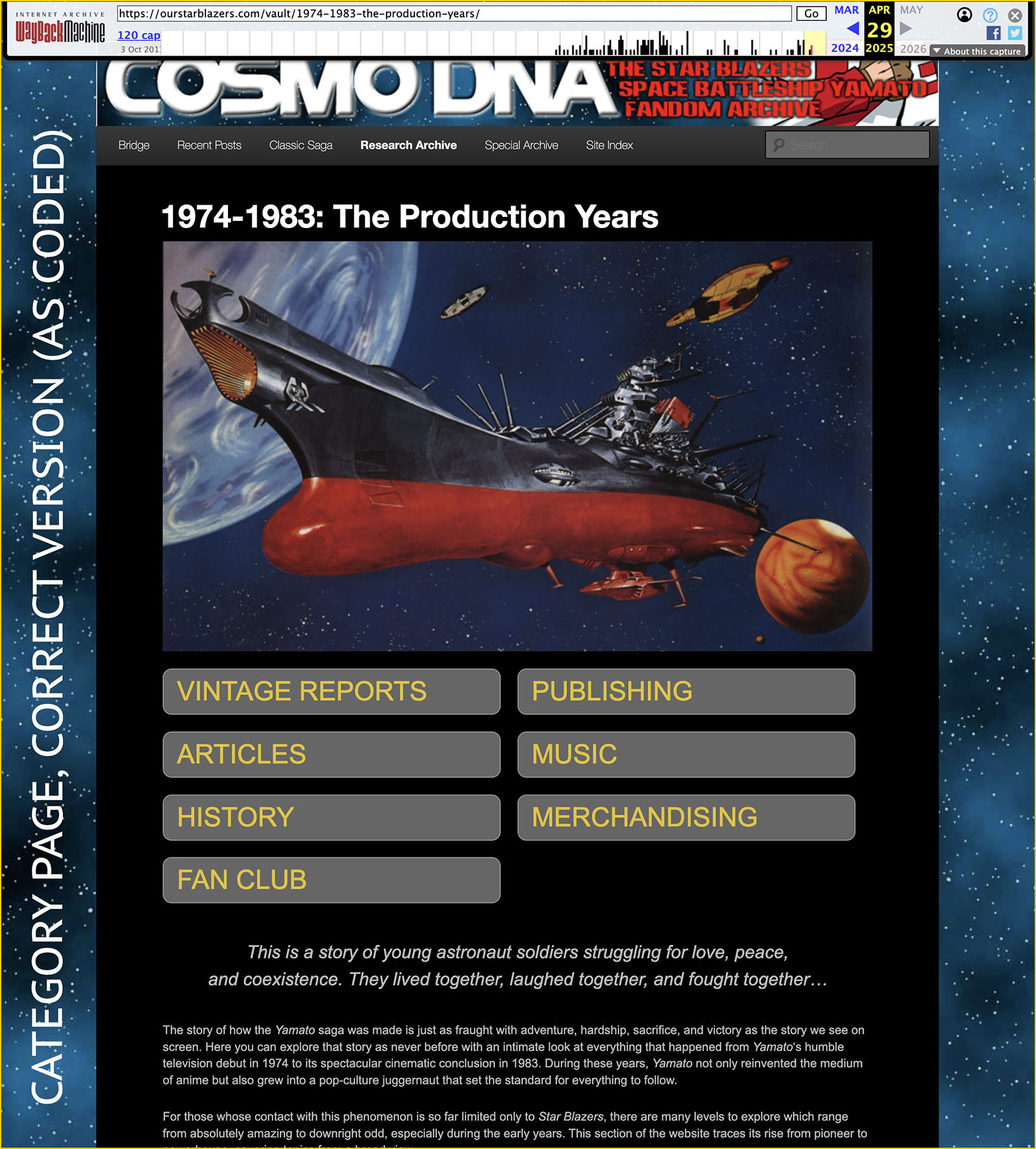 The sample page below was recovered from Wayback. In addition to the graphic elements displaying correctly, notice the menu bar just below the page banner. The text in the current menu bar should look like this, all in one line instead of two. And the text in the lower part of the page looks very different.