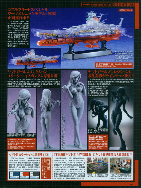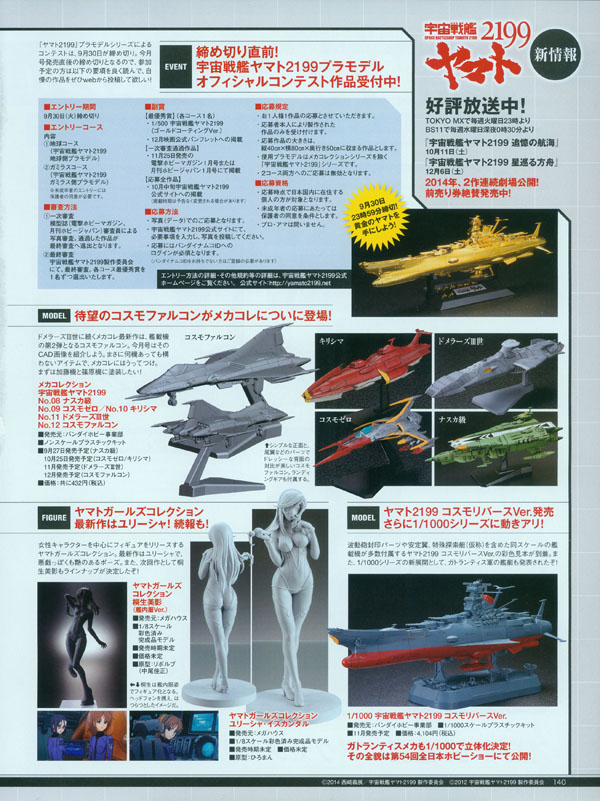 Top: modeling contest. Middle: Mecha Collection kits. Bottom left: Megahouse figures. Bottom right: Cosmo Reverse Yamato.