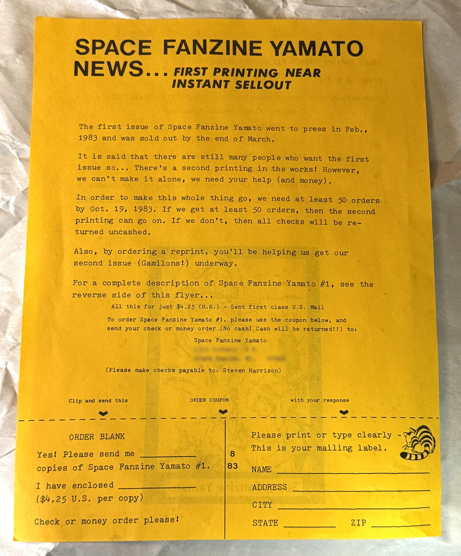 Shared with his permission, you can read a complete PDF of Space Fanzine here