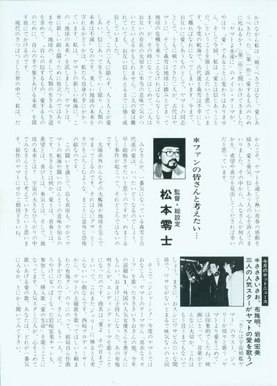 What is life, love, youth, hope, joy, courage, and the future of the planet? I want you all to think about this in the vast expanse of outer space. Please look forward to the new Yamato by all means.