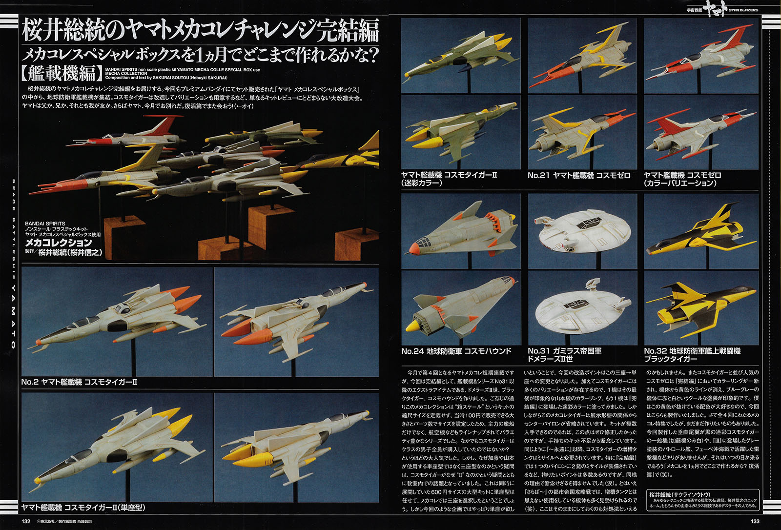 We bring you the final installment of Sotou Sakurai’s Yamato Mecha Collection challenge. This time, the EDF fighters are gathered from the Yamato Mecha Collection Special Box set sold by Premium Bandai. The Cosmo Tiger has been modified to create variations, making this a major remodeling contest that goes beyond a simple kit review. Is Yamato a father, a brother, or a friend? Farewell, Yamato, this month is the last. See you again in the Resurrection Chapter! (HEY!)