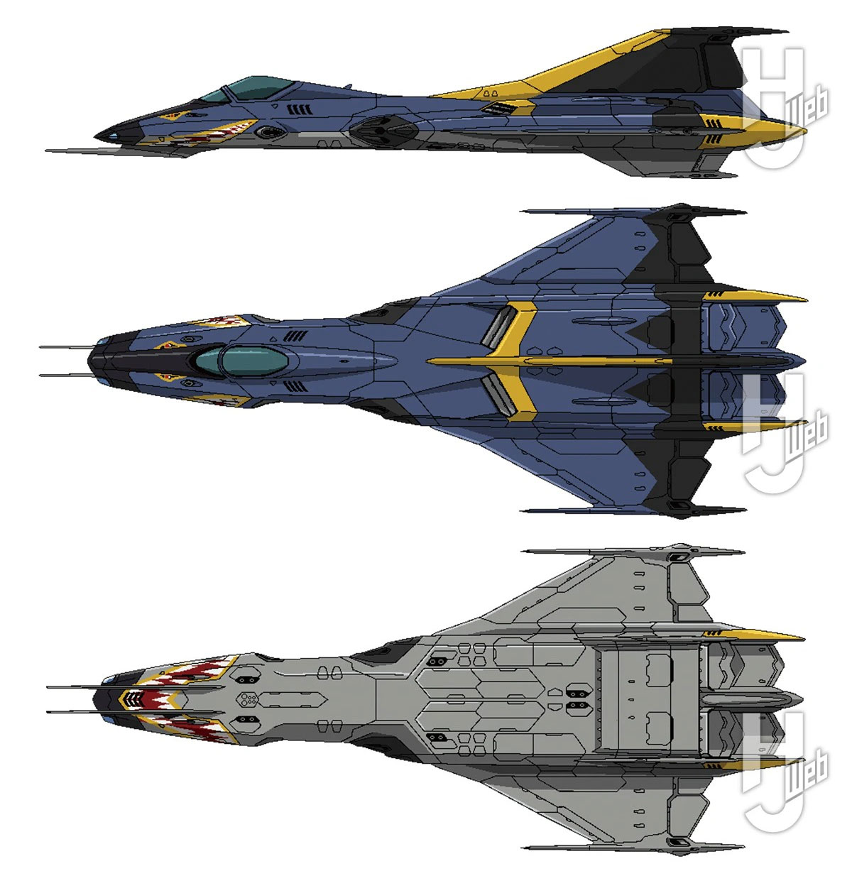 This aircraft deployed to the Andromeda-class vanguard armed carriers Apollo Norm and Antares. The name of the assigned ship is written on the vertical stabilizer.